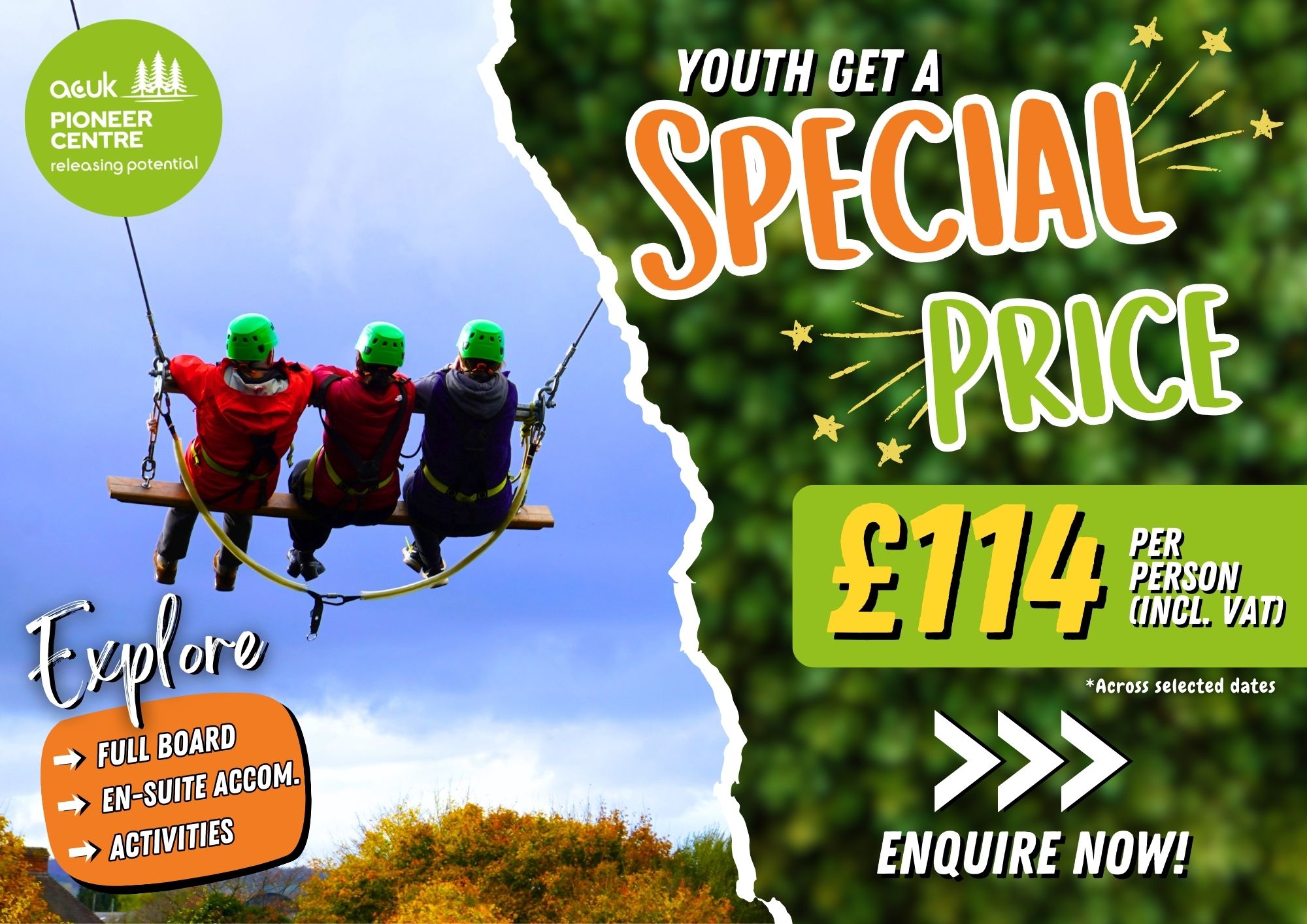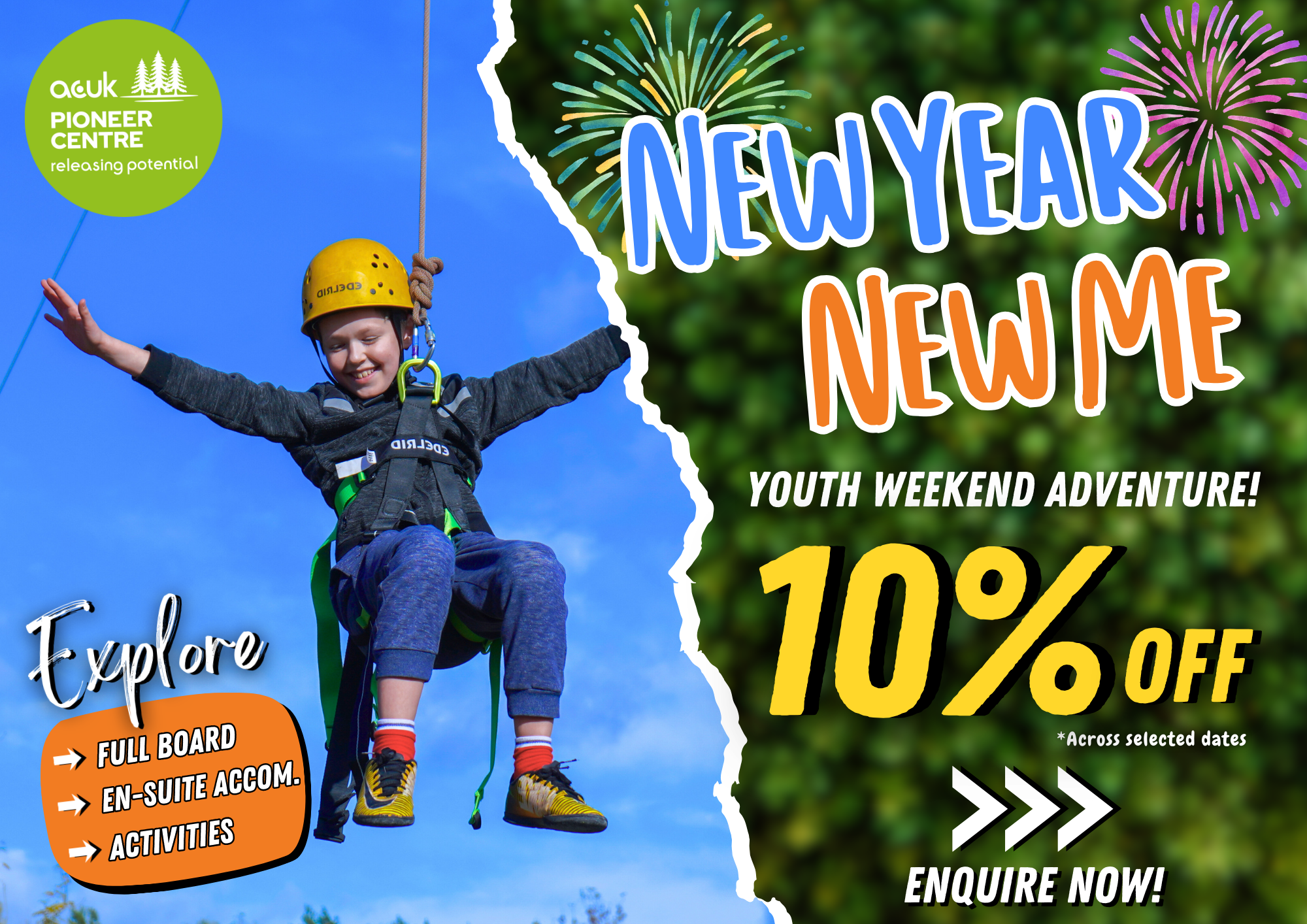 It’s time to unlock the potential of your YOUTH by booking onto a Youth Adventure Weekend! Now’s a better time than ever as you can now enjoy 2 nights of full board accommodation all for a reduced price!